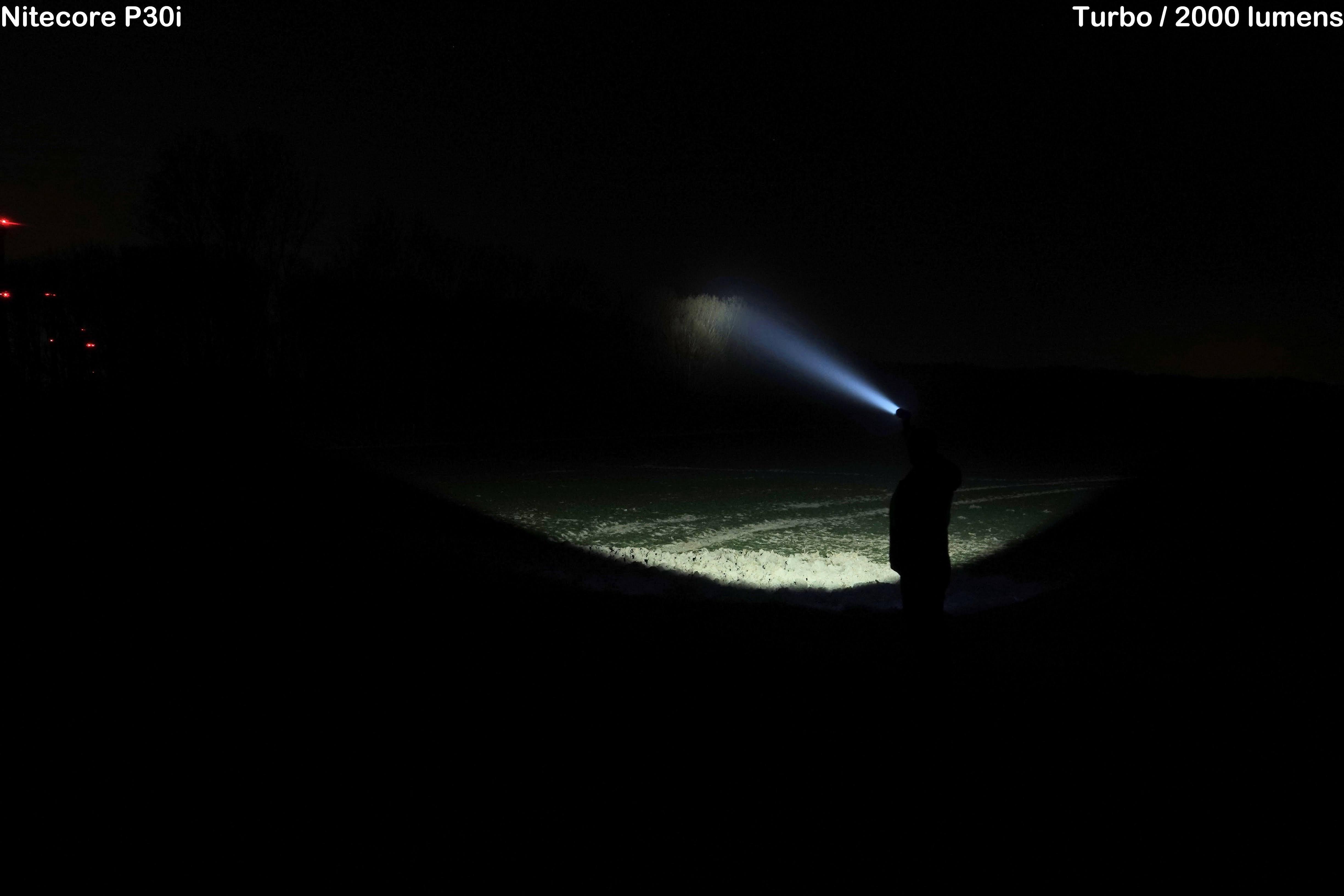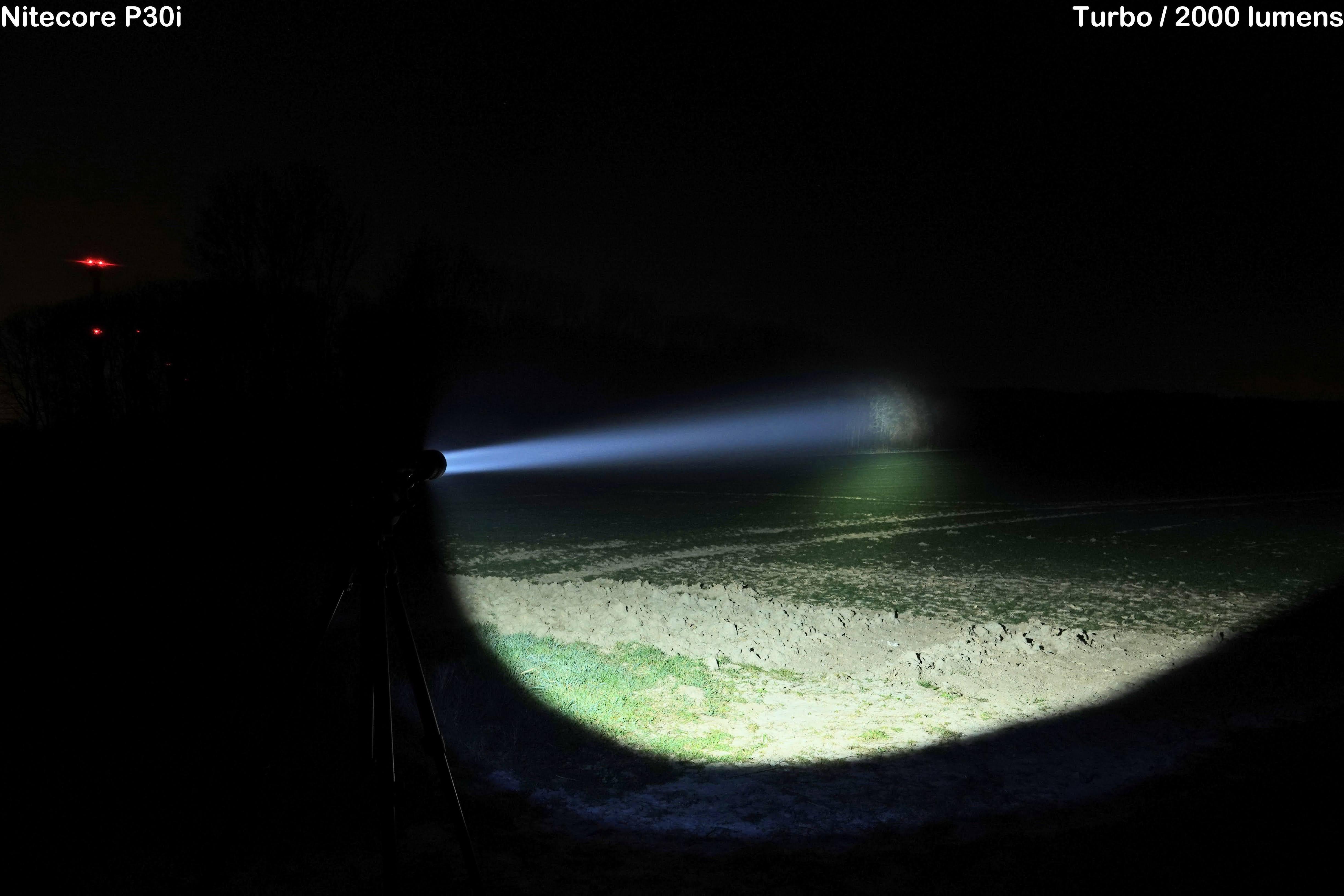 Lastly, some pictures in an open field. Again, you can see that the P30i effortlessly reaches long distances, and again the advantage of the large hotspot. The P30i is truly a handheld searchlight!