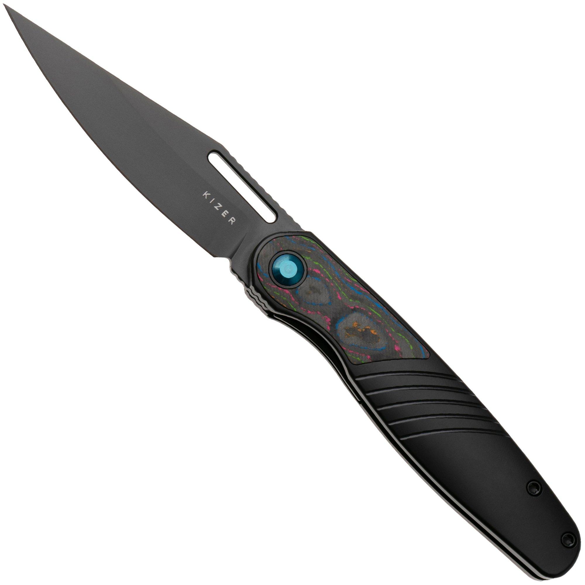 Kizer Raze KI3720A2 Bubble Stonewashed S45VN, Titanium Leather Inlay, pocket knife, Mark Perez design