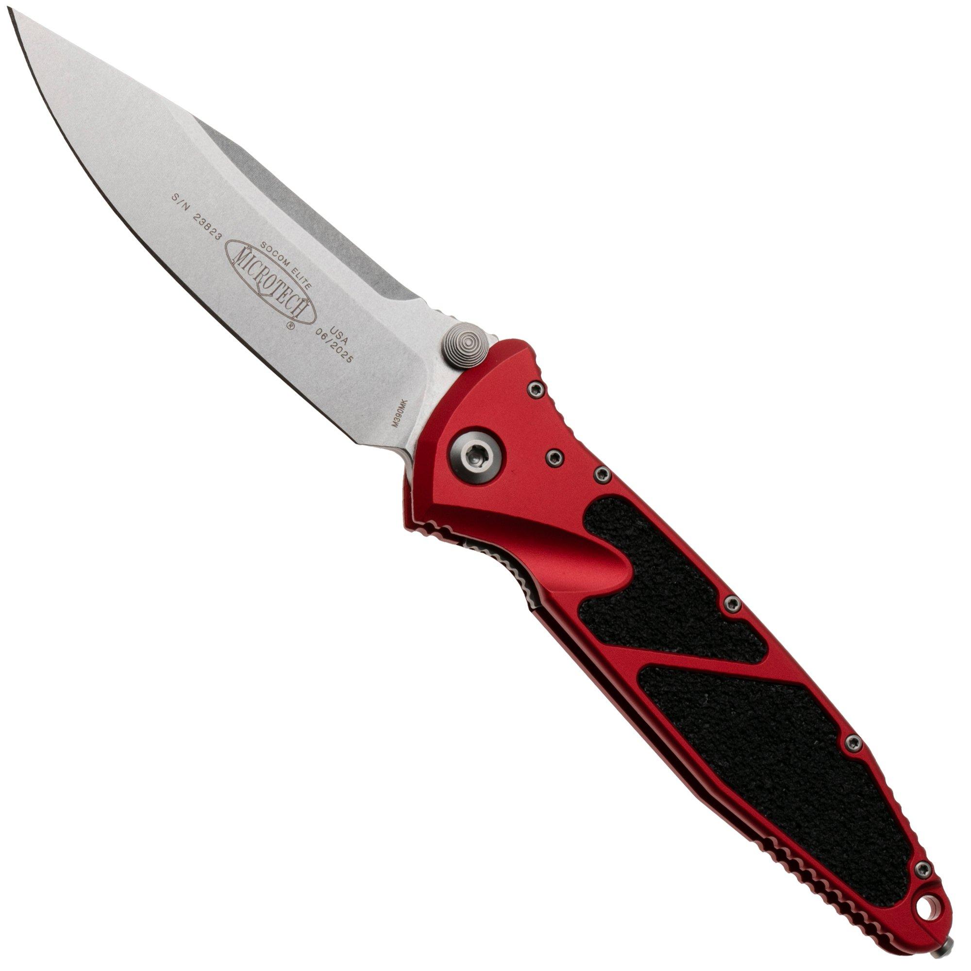 Microtech Socom Elite 160-10RD, Stonewashed M390 Clippoint, Red Aluminum pocket knife