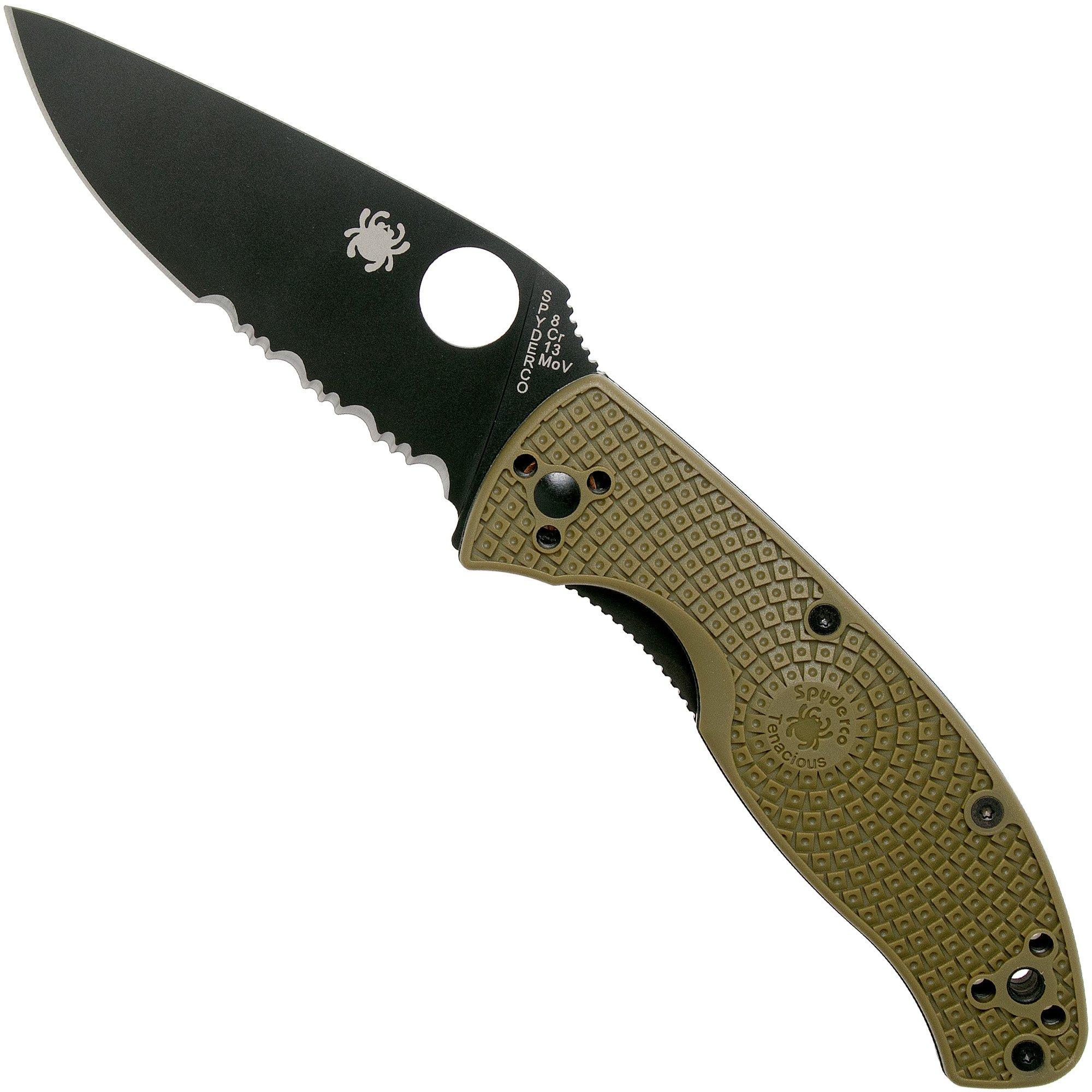 Spyderco Tenacious Lightweight OD Green Black C122PSODBK FRN partly serrated pocket knife